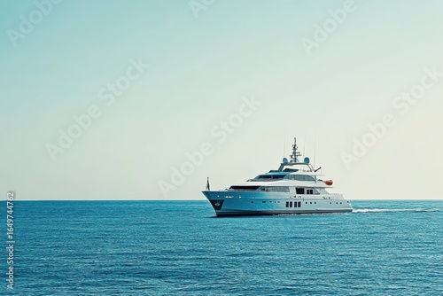 Luxury yacht cruises on a calm blue ocean under a clear sky