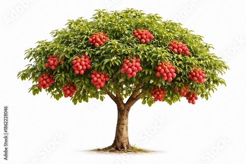 Lychee Tree with Ripe Lychee Fruits Isolated on White Background Ai Genreted 2