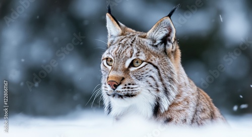Lynx in snowy landscape, showcasing its keen gaze and beautiful fur