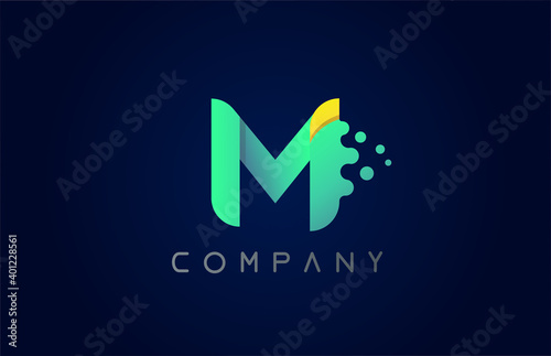 M yellow green letter logo icon. Creative alphabet design for company and business