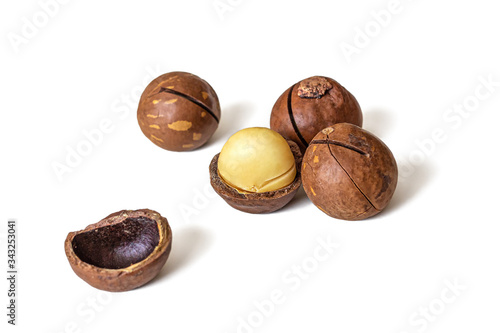 Macadamia nuts from Australia on a white background