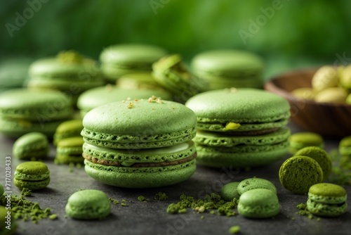 macaroons on a wooden table (Matcha Green Tea Macaron)