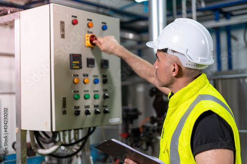 Machine engineers inspect machines and sterilizers in food factories or factory drinking water plants. Machine maintenance..