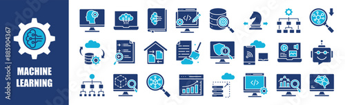 Machine Learning icon collection set. Containing technology, science, digital, ai, computer, innovation, and more. Solid vector icons collection.