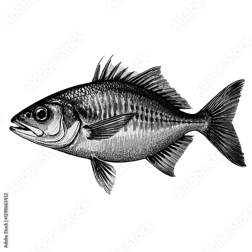 mackerel fish, featuring intricate line work and realistic texture, isolated on white sketch engraving isolated on white or transparent background