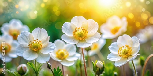 Macro bokeh photography captures a soft-focus white mountain avens flower cluster.