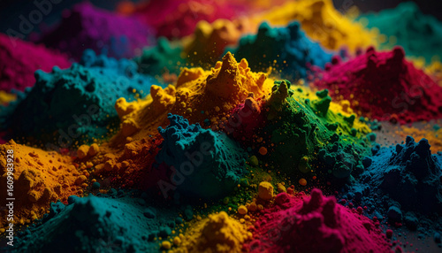 Macro Close Up Holi Powder Pigments. Indian Holi Festival Concept. Generated Image