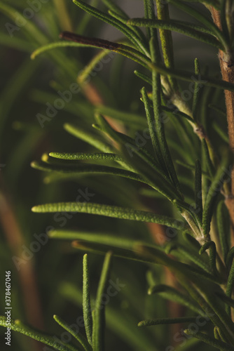 Macro close up portrait of rosemary plant leave , studio lighting, selective focus