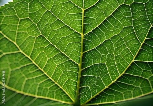 Macro closeup of a vibrant green leaf reveals intricate vein patterns and cellular structure
