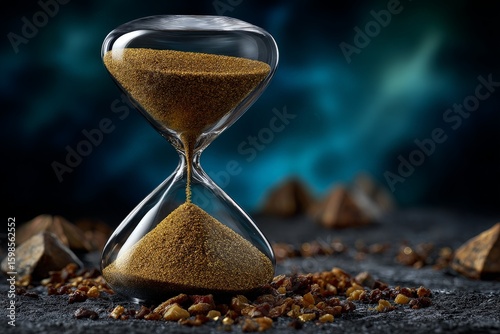 Macro Close-Up of Fine Sand Grains Falling Inside Hourglass