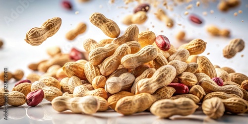 Macro closeup of peanuts, subtly blurred by long exposure, against a pristine white backdrop.