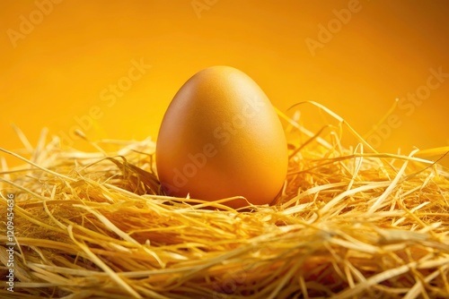 Macro detail reveals a sunlit yellow egg nestled in straw, sharply focused.