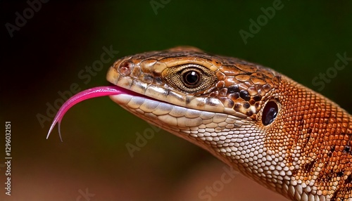 Macro lizard tongue flick: sharp texture reveals hunting tool nature. Predatory, fast, detailed. Wildlife action, reptilian agility