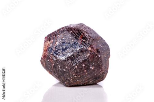 Macro of a mineral garnet stone on a white background