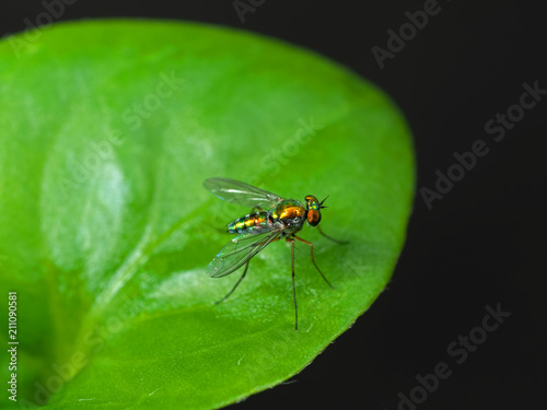 Macro Photo of Beautiful Fly on Green Leaf Isolated on Background