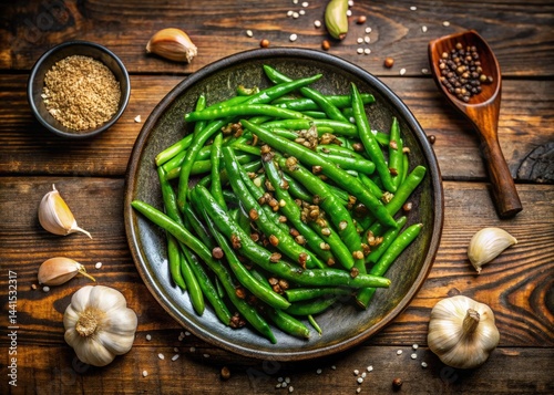 Macro Photo: Wok-Fried Green Beans with Garlic & Sesame - Vegetarian Recipe