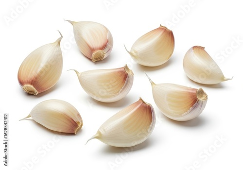 Macro Photograph of Peeled Garlic Cloves on White food ingredient