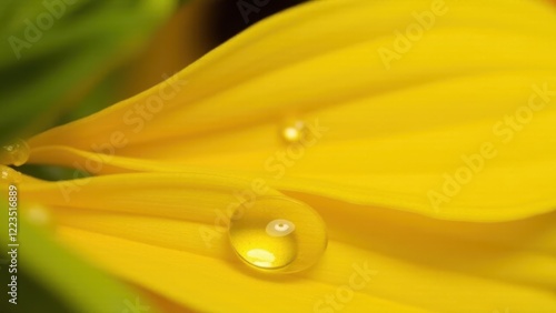 Macro photography of dewdrops on a yellow sunflower petal