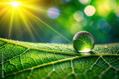 Macro Photography: Vibrant Dewdrops on Lush Green Leaf, Positive Life Concept