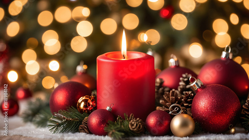 Macro Photorealistic Christmas Candle with Cozy Decorations