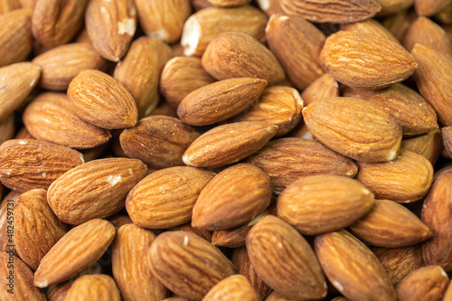 Macro shooting of dry Almond Nuts.Vegetarian food rich in minerals and vitamins. Selective focus