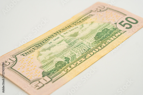 Macro shot of a 50 dollar. Portrait of US president Ulysses Simpson Grant on 50 dollars banknote. U.S. Bill fifty fifty dollars close to Grant.