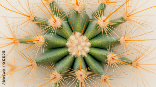 Macro shot of a cactus blossom, bright yellow contrast with green spines