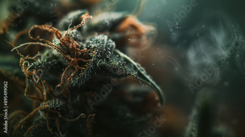 Macro shot of a cannabis bud under soft studio lighting, highlighting the texture and colors
