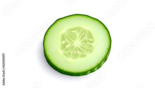 Macro shot of a fresh cucumber slice on a white background displaying natural beauty