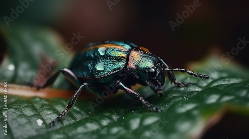Macro shot of a ladybug on a leaf in the rain.generative ai