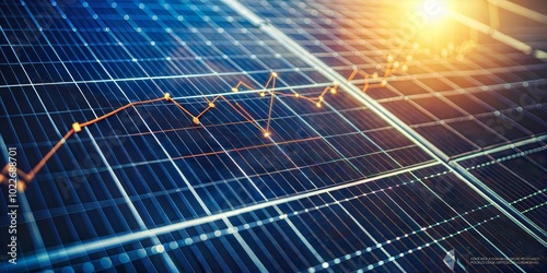 Macro shot of a solar panel texture overlaid with financial graphs depicting renewable energy market trends.