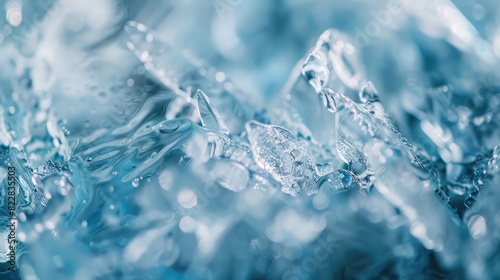 Macro shot of abstract ice formations, emphasizing texture and light play
