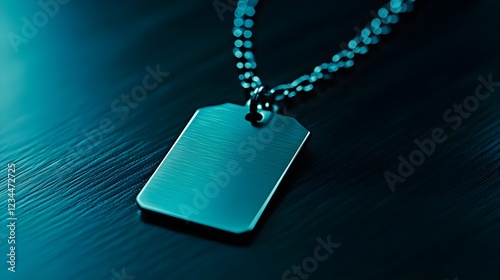 Macro Shot of Dog Tag with Engraved Text on Dark Surface