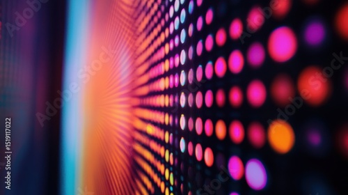 Macro shot of out-of-focus LED lights with bright vibrant colors. Ideal as a background for tech, design, or abstract concepts.