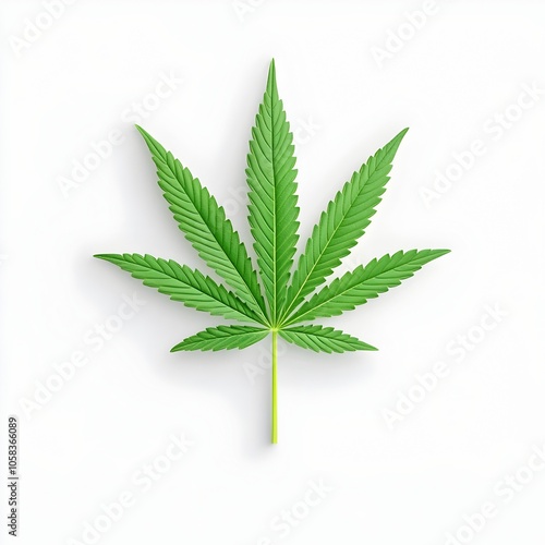 Macro Shot of Perfect Green Cannabis Leaves Isolated on White Background