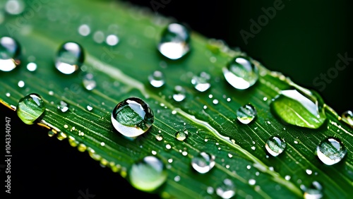 Macro Shot of Shimmering Water Droplets Resting on a Textured Green Leaf, Reflecting Nature's Pure Elegance (5)
