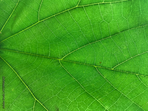 Macro Shot of Vibrant Green Leaf Veins and Natural Texture