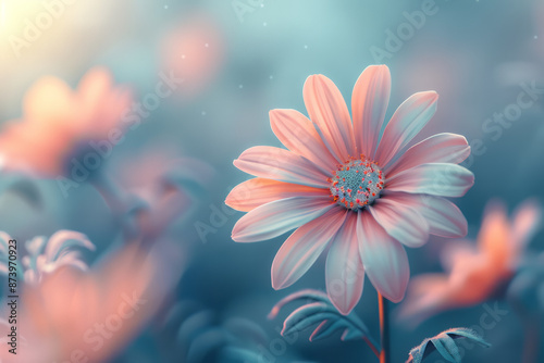 Macro view of a single cartoon flower in a soft, minimalist vector field, with subtle shading and gentle curves,