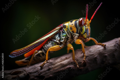 Macro view of insect or bug known as barber pole hopper. generative AI