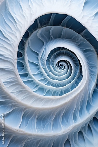 Macro view of the intricate inner structure of a seashell, highlighting the natural beauty and complexity of marine life