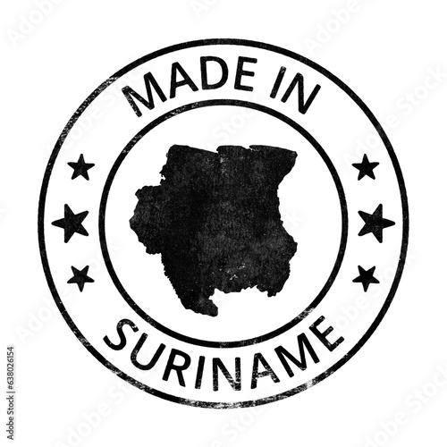 Made in Suriname grunge rubber stamp with country map isolated on transparent background