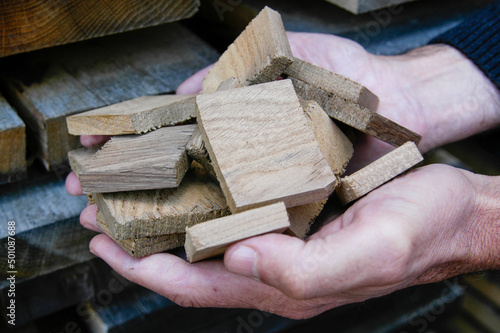Maderas para la construcción de barricas de roble en La Puebla de Labarca, Álava, País Vasco.