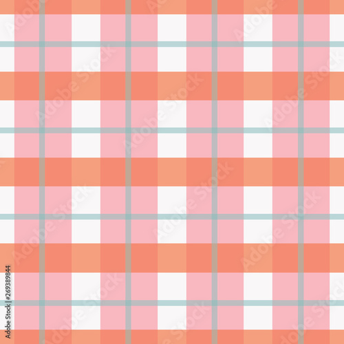 Madras plaid seamless vector pattern in pink, orange, white and turquoise. Fresh, crisp look, great for spring or summer fashion, textiles, bedding, home decor, stationery and paper goods. Vector.
