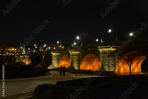 Madrid, Espagne, 27 décembre 2015 : Pont de Tolède, pont médiéval en pierre de Madrid et sa fontaine