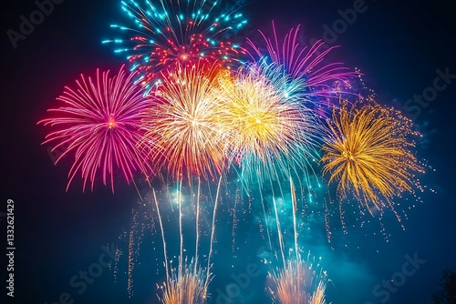 Magenta Fireworks Night Streaks Abstract Summer Beauty