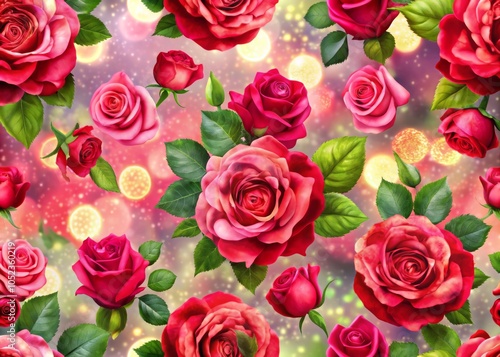 Magenta Rose Seamless Pattern with Bokeh Effect