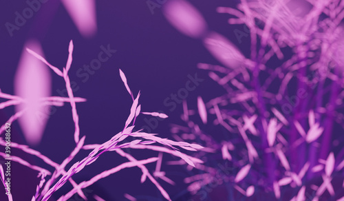 Magenta tree branches in fantasy forest, fairy background with copy space, 3d rendering