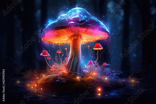 Magic mushroom pattern in fairy tale woods, nature wallpaper. Generative Ai.