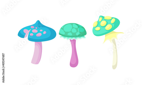 Magic Mushrooms with Bright Cap and Stipe Vector Set