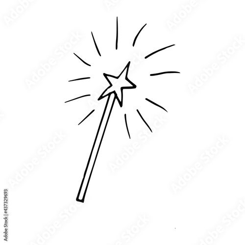 magic wand nordic scandinavian style decor icon. hand drawn doodle. vector, minimalism, monochrome. sticker, poster, card.